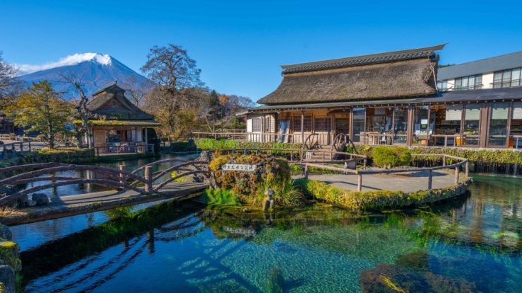 Highlights include beautiful photo stops around Lake Yamanaka, known for its peaceful lakeside scenery and open views of Mount Fuji. You will also visit Oshino Hakkai, a picturesque village with crystal-clear spring water and traditional houses—perfect for memorable family photos. The journey continues to Fujisan Sengen Shrine, a tranquil spiritual site deeply connected to Mount Fuji, followed by a relaxing stroll at Oishi Park, famous for its seasonal flowers and panoramic mountain views.